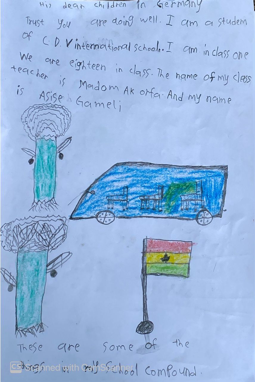 Aktuell haben wir ein Projekt mit der Theodor-Fischer-Grundschule in München gestartet, über das Spenden gesammelt werden, und zusätzlich über einen Briefaustausch Grundschülerinnen in Ghana und Deutschland einen kleinen Einblick in die Lebenswelten der jeweils anderen bekommen. Hier findet ihr einen kleinen Einblick in dieses schöne Projekt: